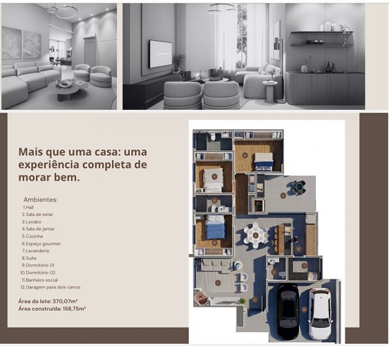 POSSUI HALL, SALA DE ESTAR E JANTAR, LAVABO, COZINHA, ESPAÇO GOURMET, LAVANDERIA, 3 QUARTOS SENDO 1 SUÍTE, BANHEIRO SOCIAL, GARAGEM PARA 2 VEÍCULOS E PISCINA.