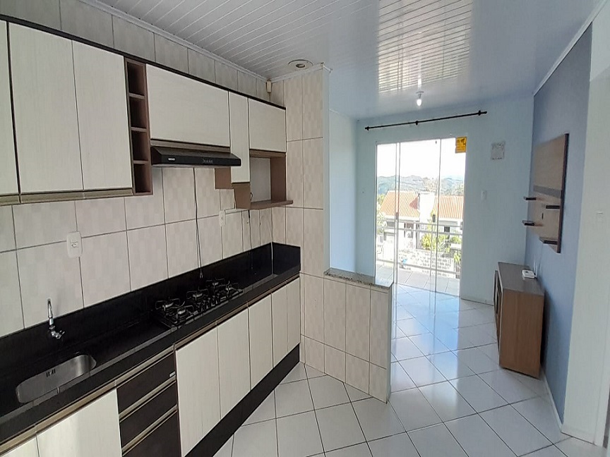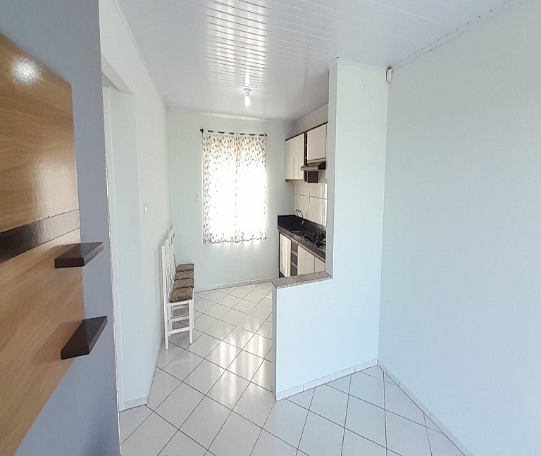 02 quartos, sala e cozinha conjugadas, banheiro social, área de serviço e lavanderia.