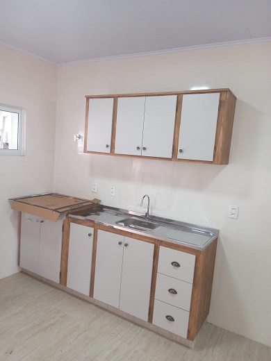 Imóvel possui pia compacta na cozinha e fogão de indução.